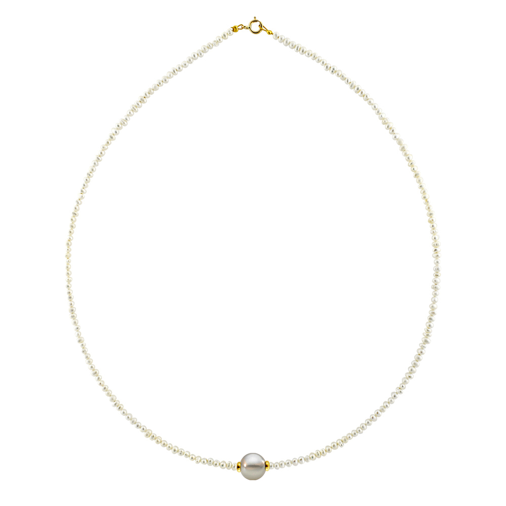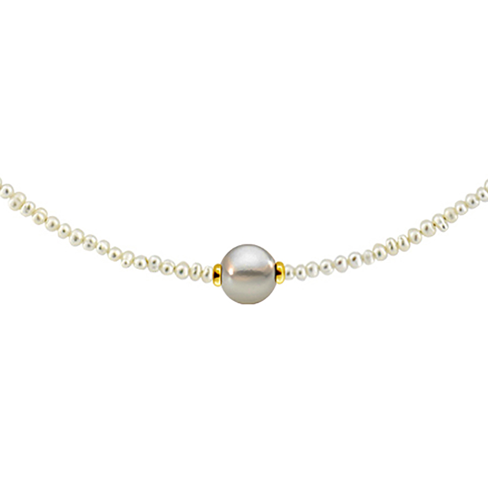 Κολιέ με Κ14 χρυσό κούμπωμα, λευκά και γκρι μαργαριτάρια - M122033G