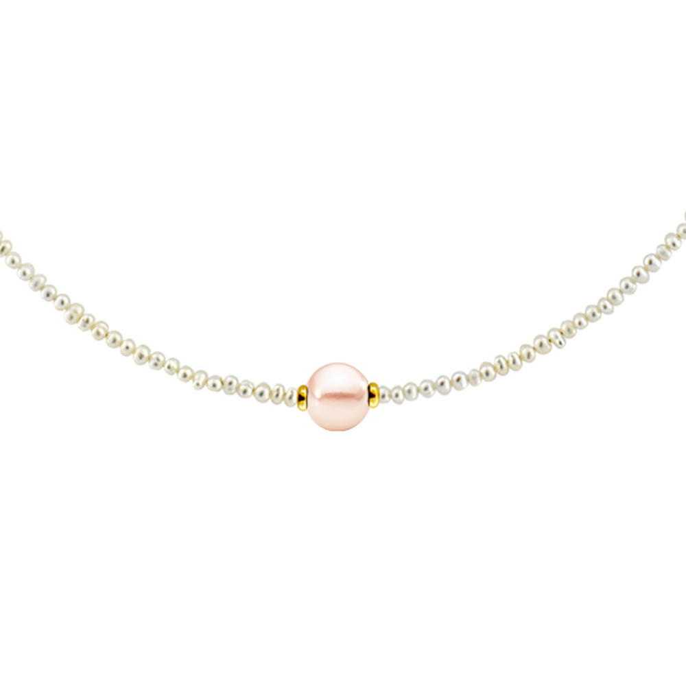 Κολιέ με Κ14 χρυσό κούμπωμα και λευκά και σομόν μαργαριτάρια - M122033S