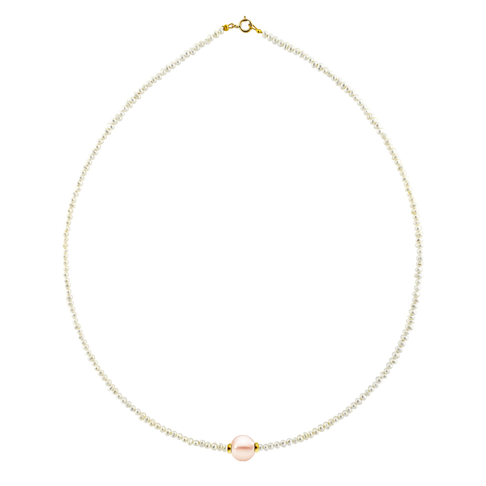 -11% Κολιέ με Κ14 χρυσό κούμπωμα και λευκά και σομόν μαργαριτάρια - M122033S