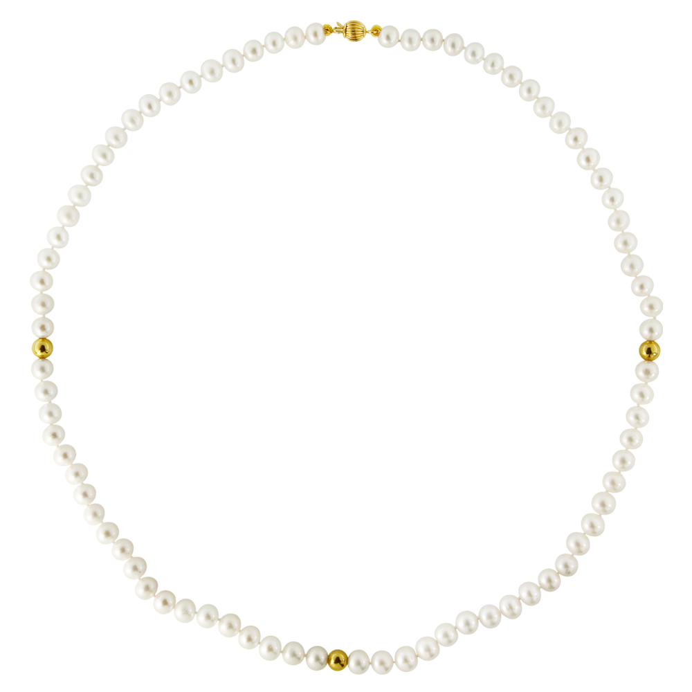 Κολιέ με λευκά μαργαριτάρια και χρυσά στοιχεία 14K - M122346