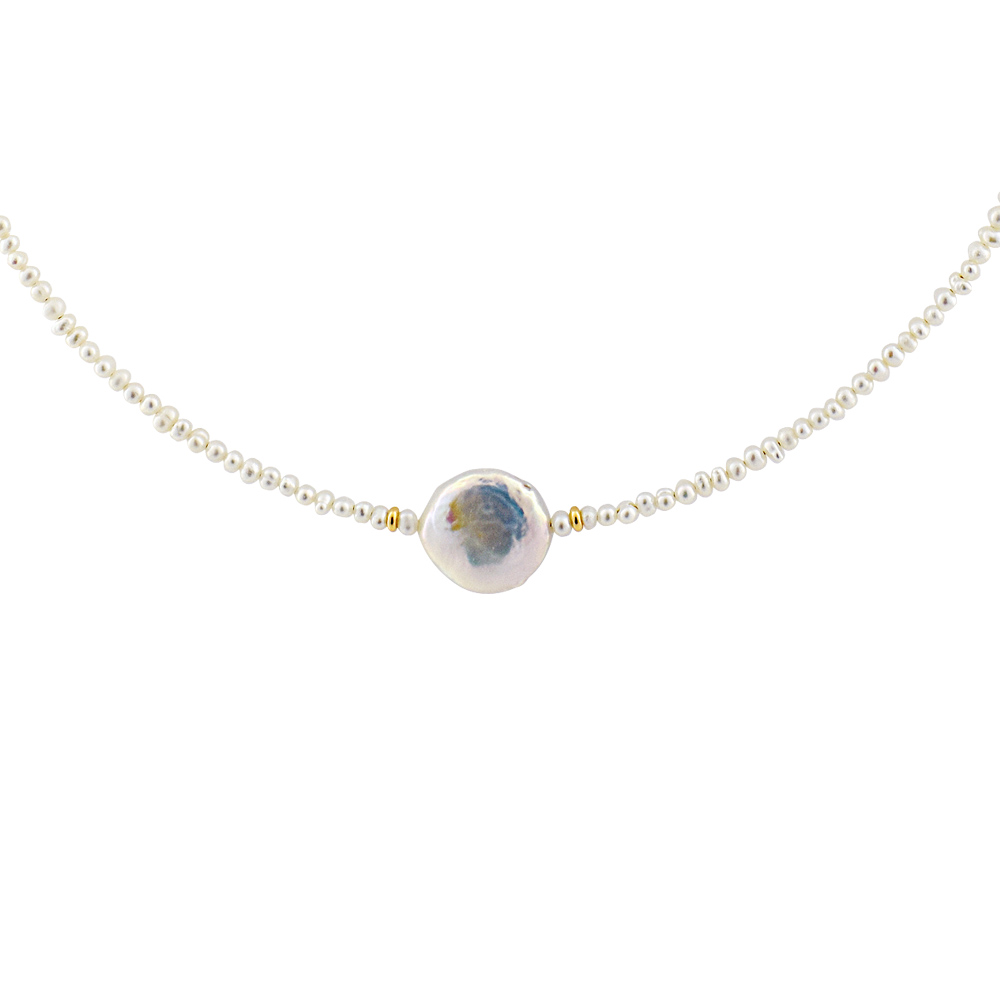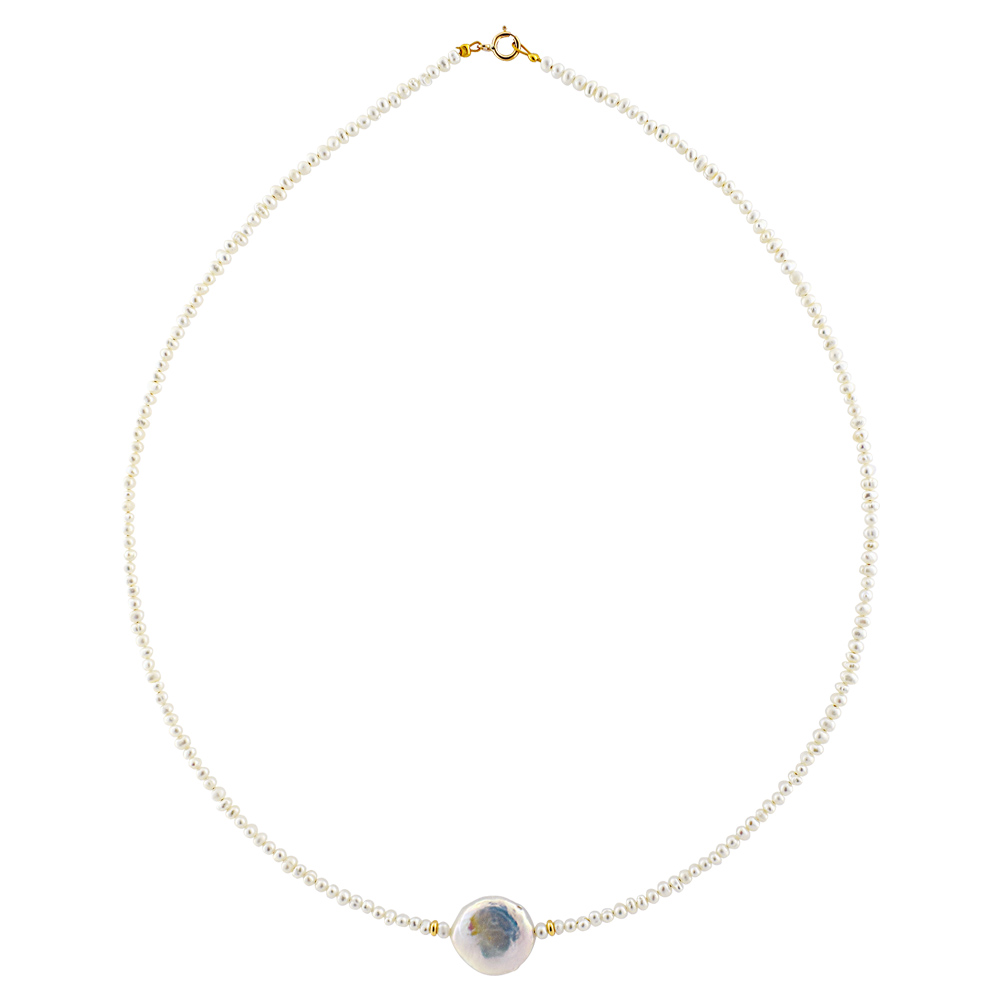 Κολιέ με Κ14 χρυσά στοιχεία και λευκά μαργαριτάρια - M122474