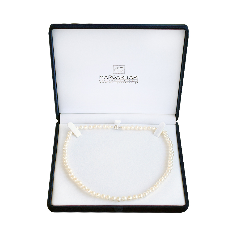• Ένα υπέροχο κολιέ απο λευκά μαργαριτάρια γλυκού νερού Fresh Water Pearl διαμέτρου 6 - 6,5 χιλιοστών, άριστης ποιότητας.