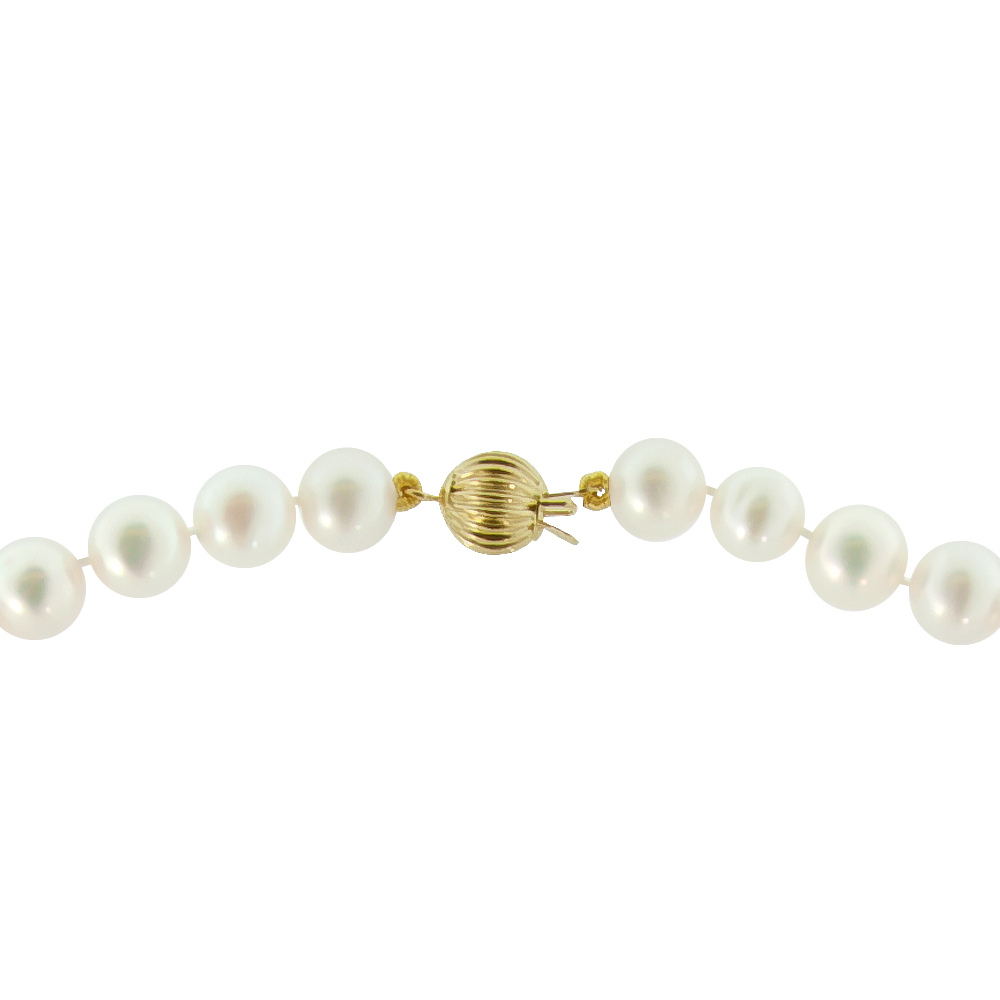 • Ένα υπέροχο κολιέ με λευκά μαργαριτάρια γλυκού νερού Fresh Water Pearl διαμέτρου 8-9 χιλιοστών.