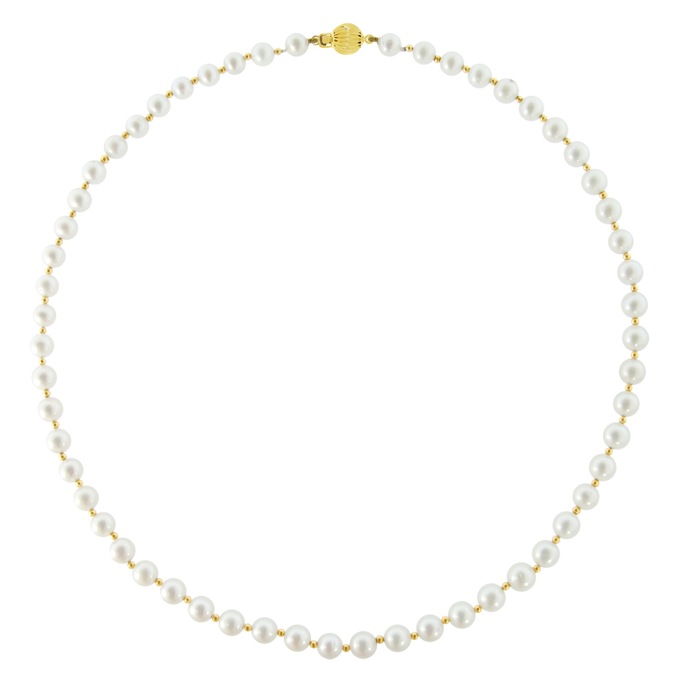 • Ένα υπέροχο κολιέ με λευκά μαργαριτάρια Fresh Water Pearl διαμέτρου 6-6,5 χιλιοστών.