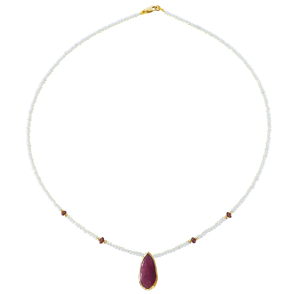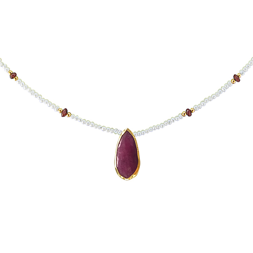 Κολιέ με λευκά μαργαριτάρια, ρουμπίνια και χρυσά στοιχεία 14K - M121222R