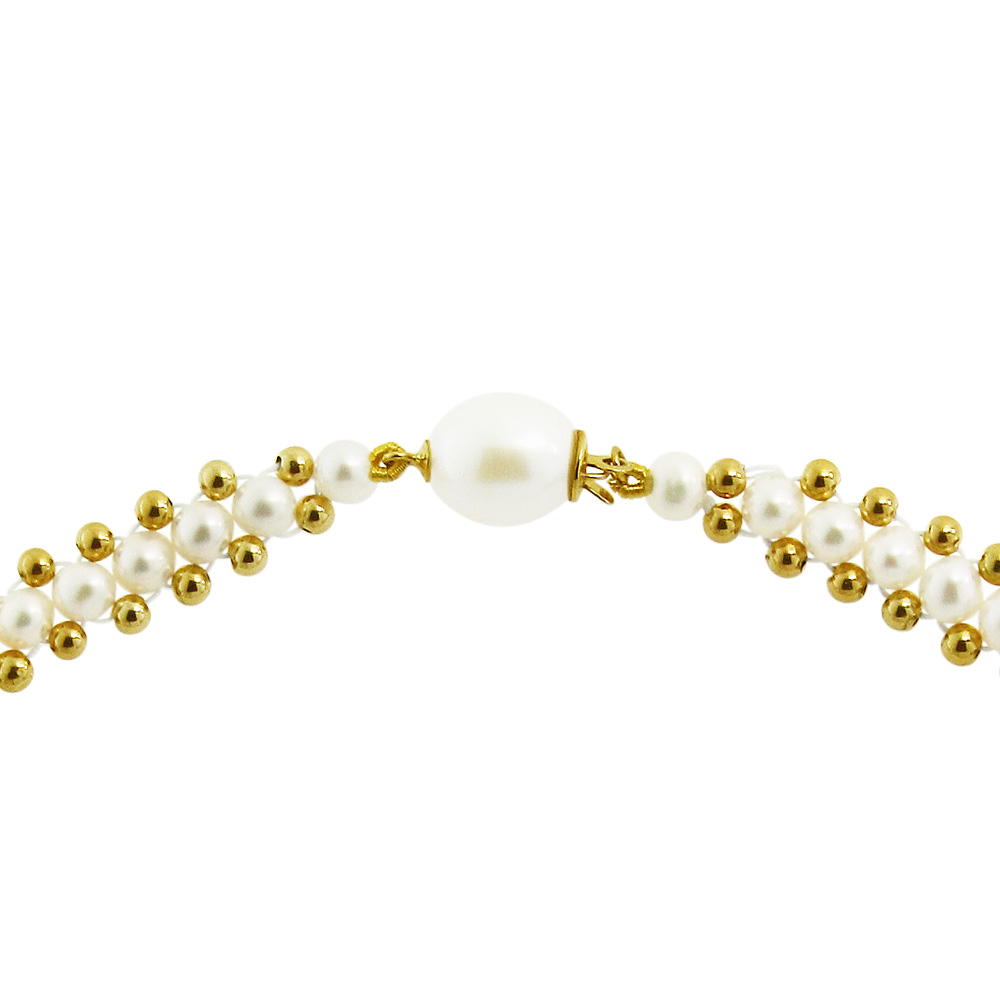 Κολιέ με Κ14 χρυσά στοιχεία και λευκά μαργαριτάρια - M122796