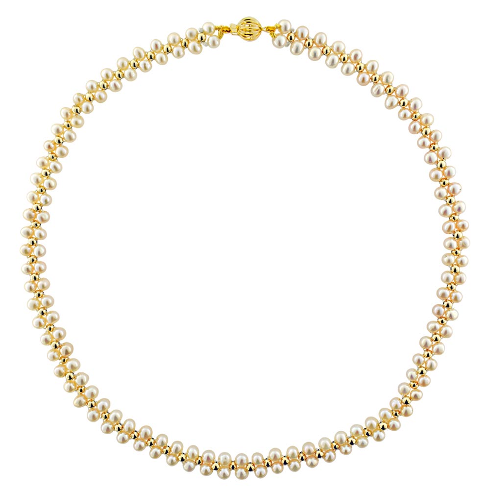 Κολιέ με Κ14 χρυσά στοιχεία και λευκά μαργαριτάρια - M122930