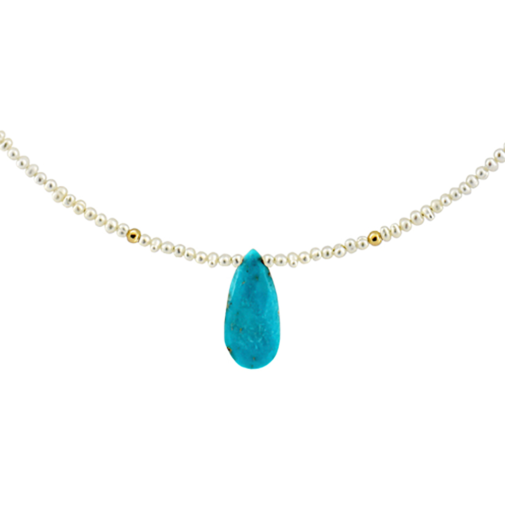 Κολιέ με Κ14 χρυσό κούμπωμα, λευκά μαργαριτάρια και τιρκουάζ - M122492