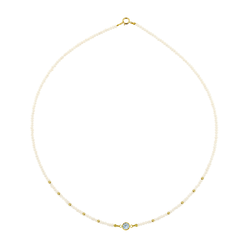 • Ένα υπέροχο κολιέ με λευκά μαργαριτάρια γλυκού νερού Fresh Water Pearl διαμέτρου 2 - 2,5 χιλιοστών.