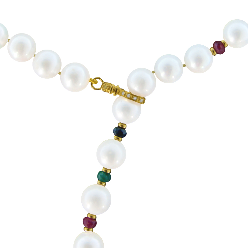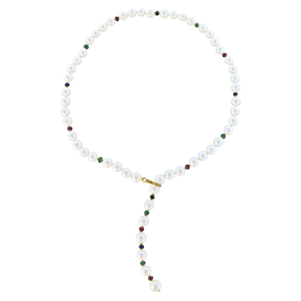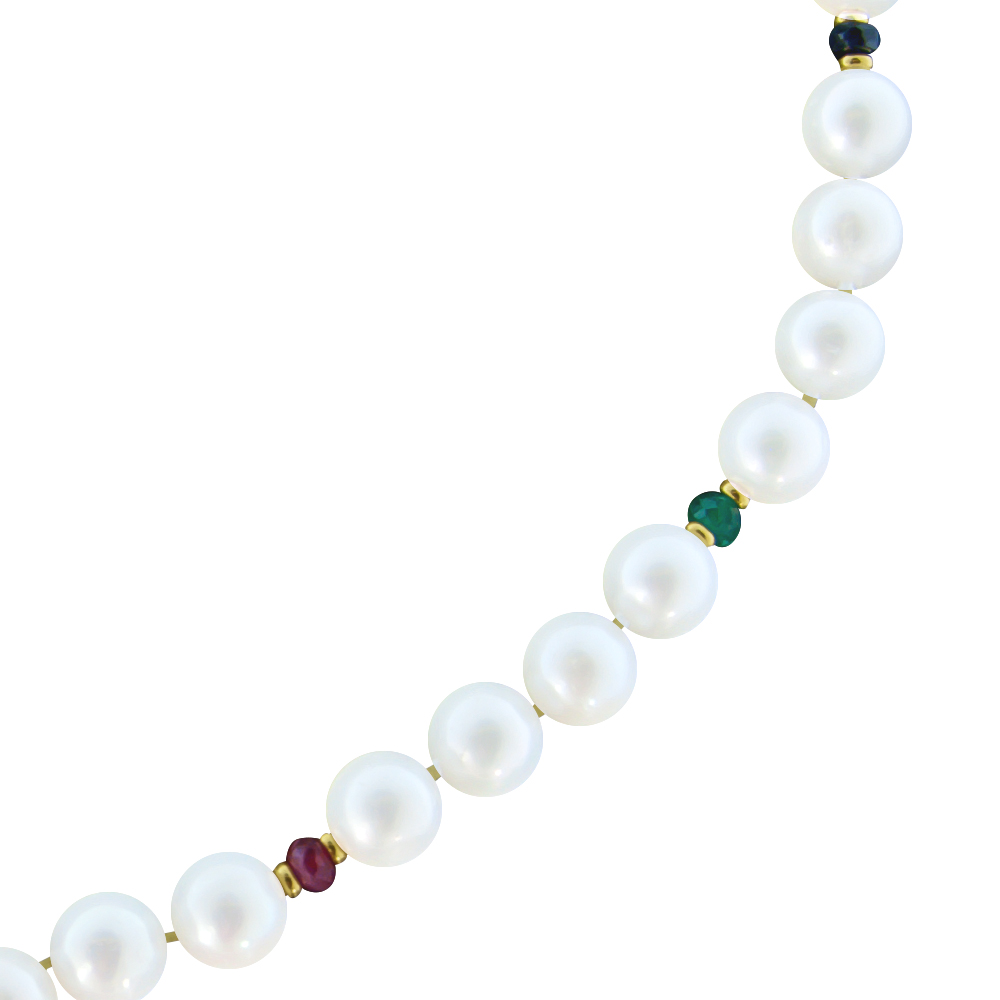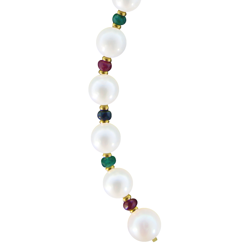 Κολιέ με Κ18 χρυσό κούμπωμα με διαμάντια, λευκά μαργαριτάρια, ρουμπίνια, σμαράγδια και ζαφείρια - M121266