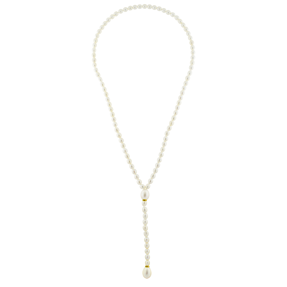 • Ένα υπέροχο κολιέ χωρίς κούμπωμα με λευκά μαργαριτάρια γλυκού νερού Fresh Water Pearl σε σχήμα Drop (σταγόνα), διαμέτρου 6,5x7,5 χιλιοστά, άριστης ποιότητας.
