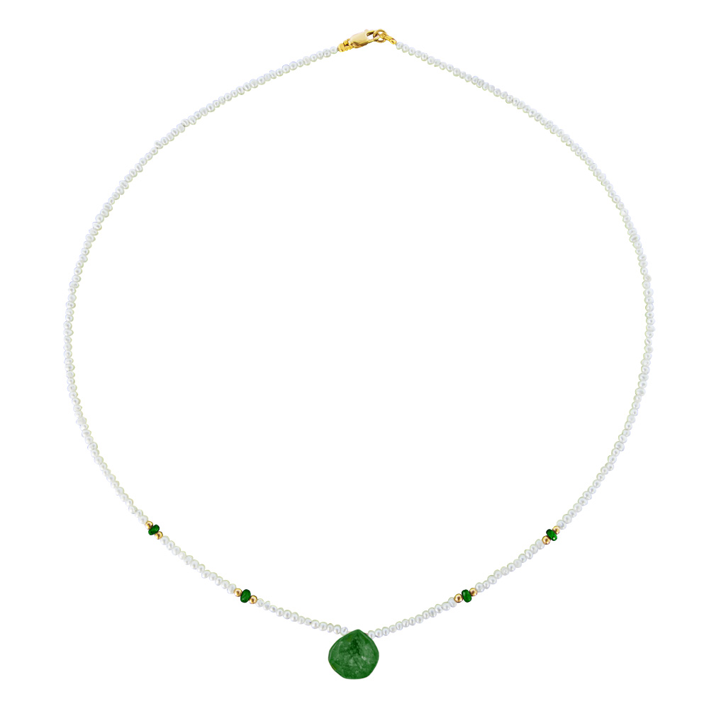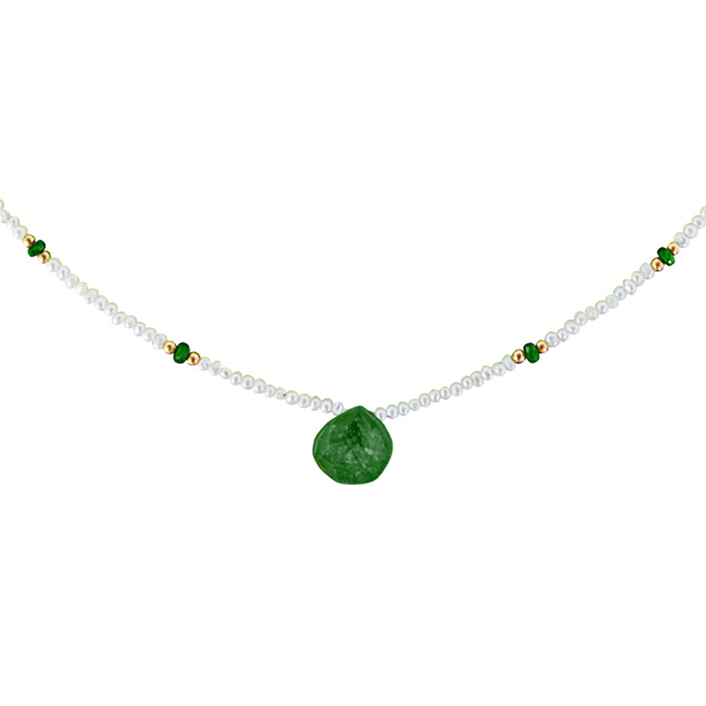 Κολιέ με λευκά μαργαριτάρια, σμαράγδια και χρυσά στοιχεία 14K - M122347E