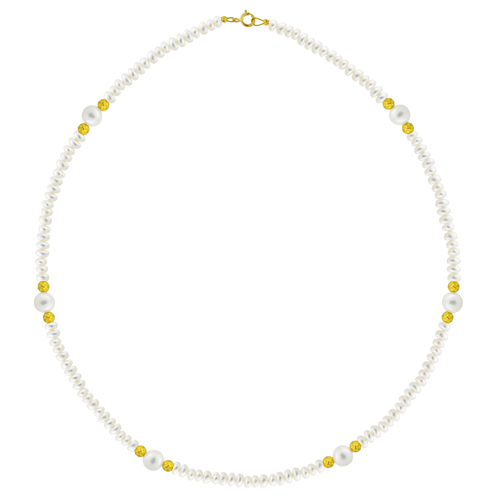 • Ένα υπέροχο κολιέ με λευκά μαργαριτάρια γλυκού νερού Fresh Water Pearl διαμέτρου 4-4,5 χιλιοστών.