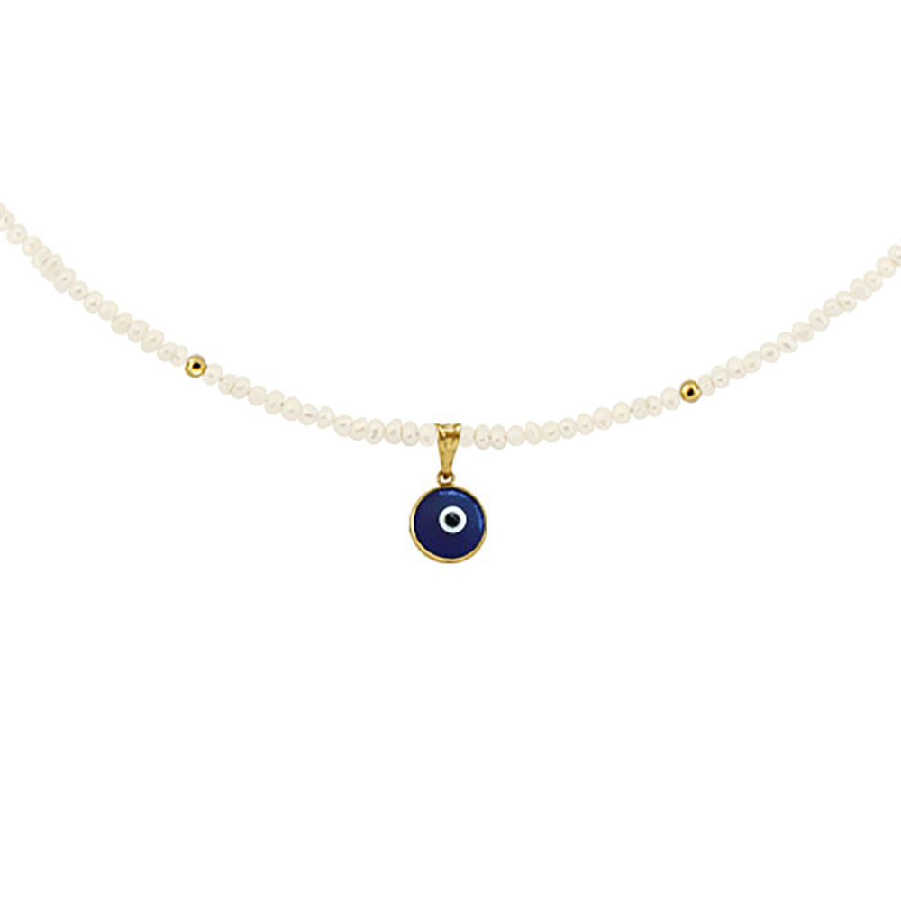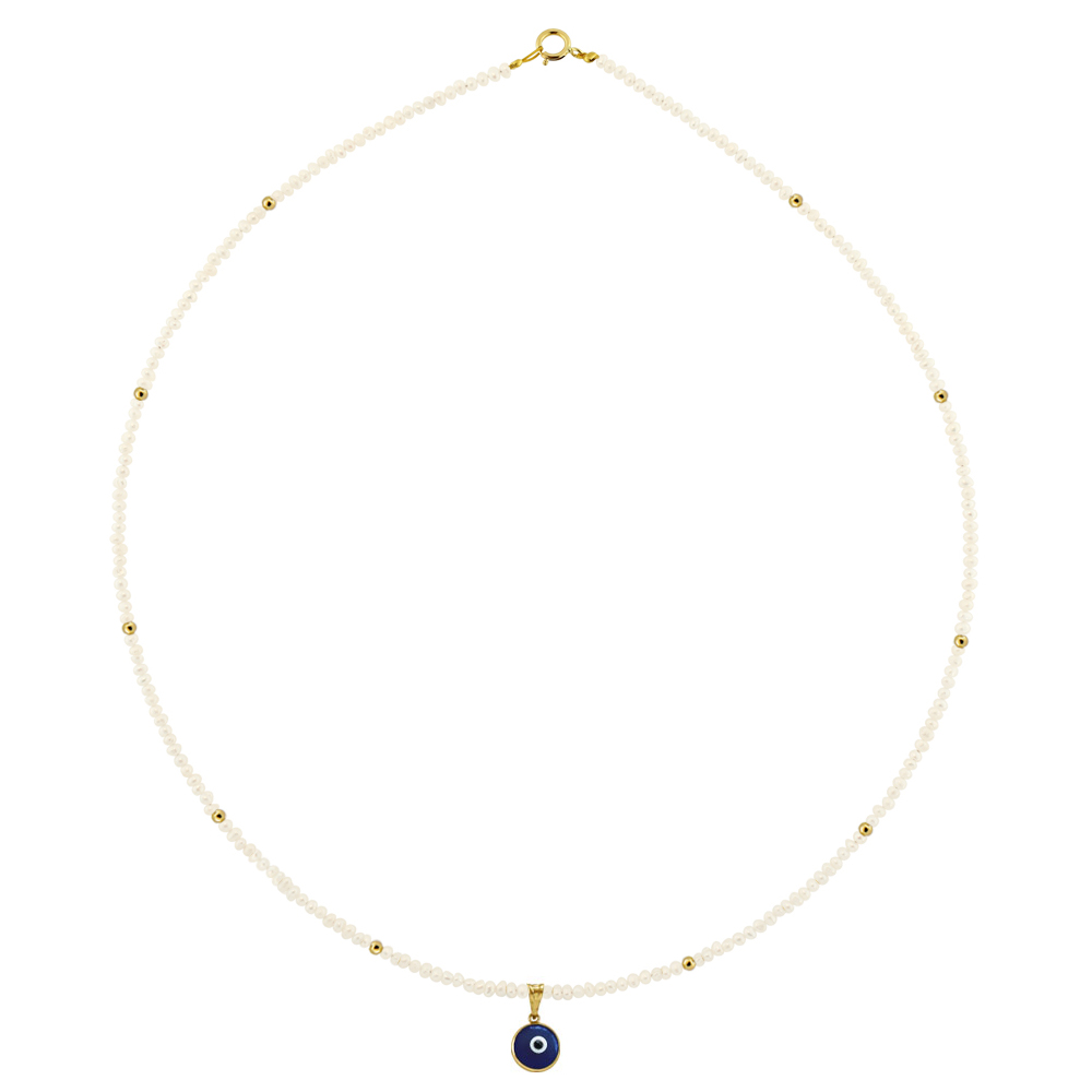 Κολιέ λευκά μαργαριτάρια με μενταγιόν και χρυσά στοιχεία 14K - M123718L