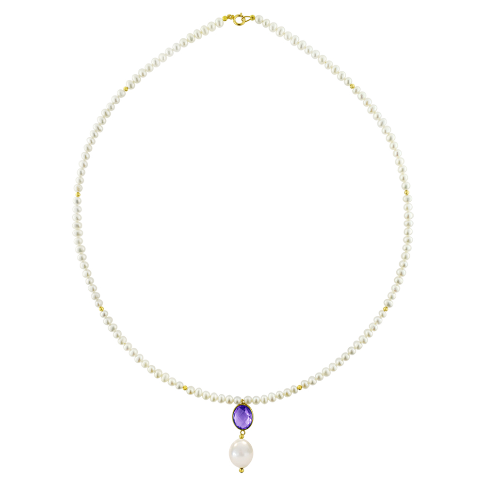 Κολιέ με λευκά μαργαριτάρια και χρυσό μενταγιόν K14 - M123083A