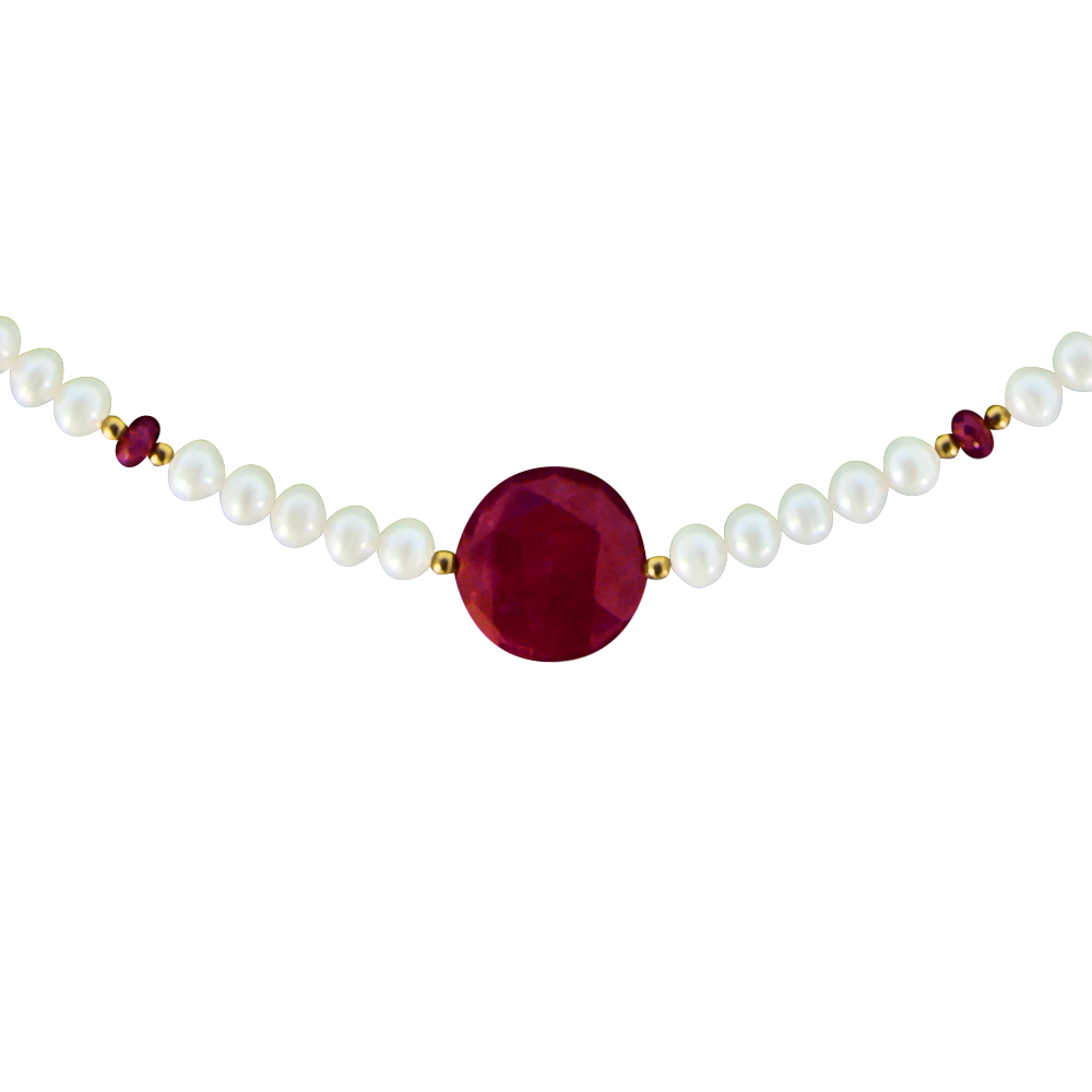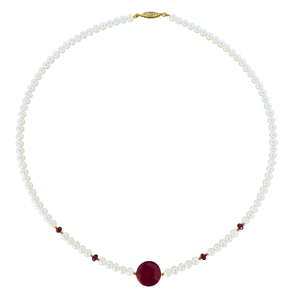 Κολιέ με λευκά μαργαριτάρια, ρουμπίνια και χρυσά στοιχεία 14K - M122166R