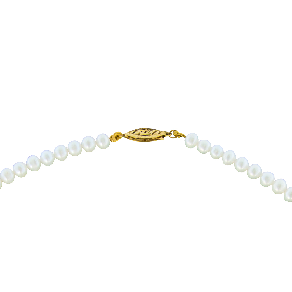 • Ένα υπέροχο κολιέ απο λευκά μαργαριτάρια γλυκού νερού Fresh Water Pearl διαμέτρου 4 - 4,5 χιλιοστών, άριστης ποιότητας.