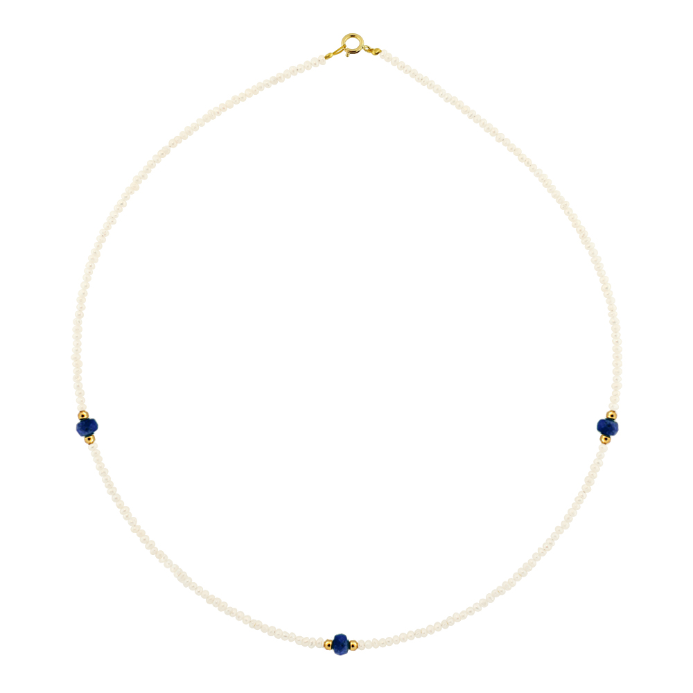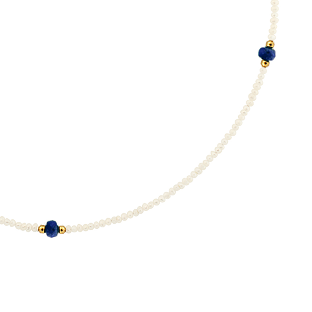 Κολιέ με μαργαριτάρια, ζαφείρια και χρυσά στοιχεία Κ14 - M122497S