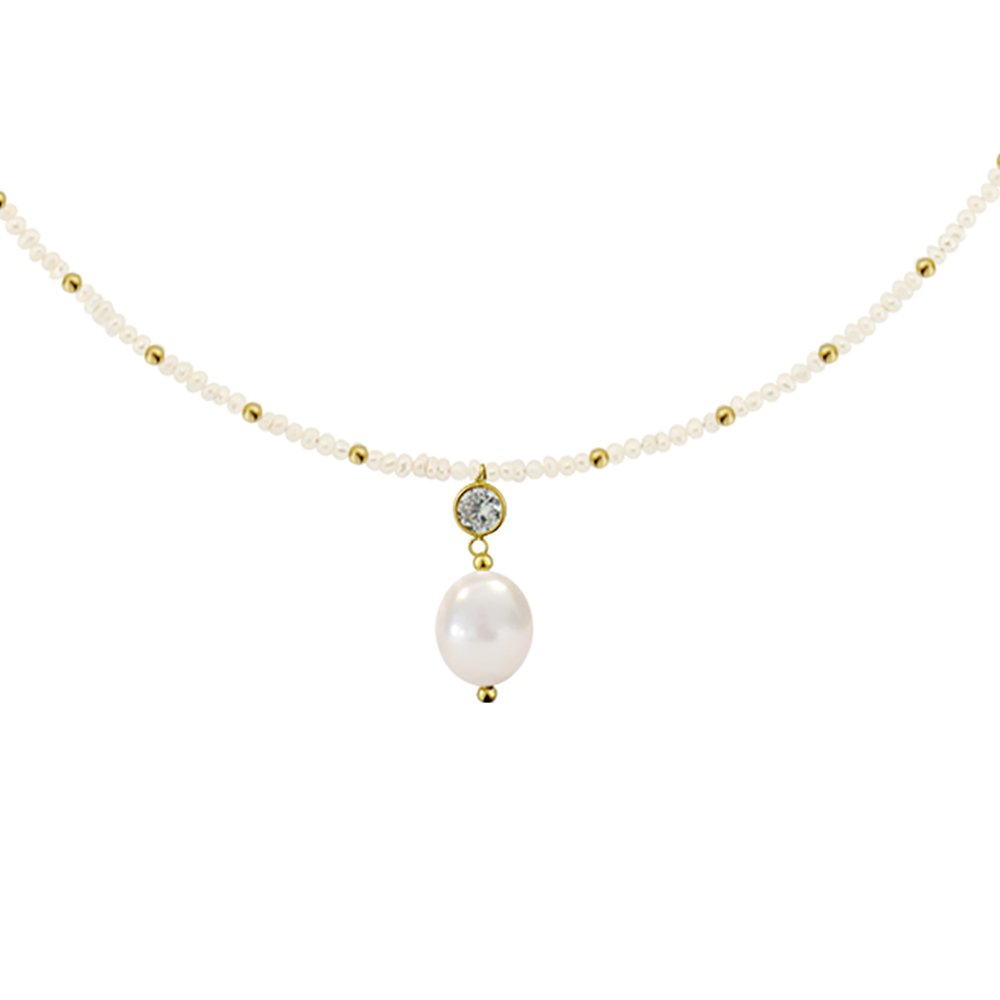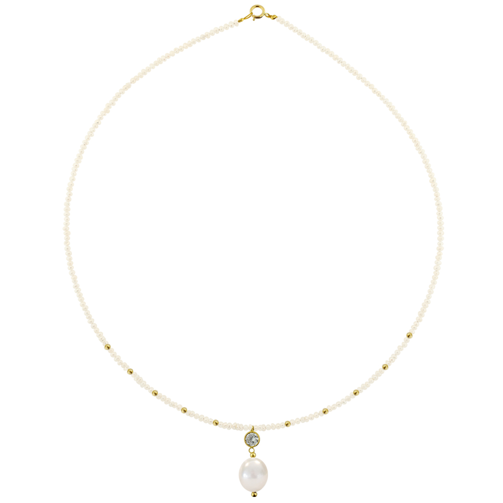 Κολιέ με λευκά μαργαριτάρια και χρυσό μενταγιόν K14 - M123085