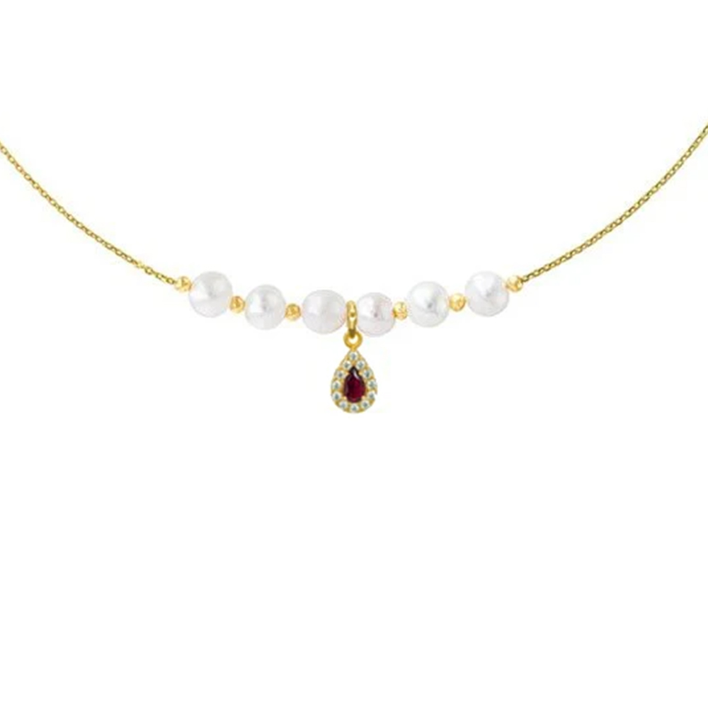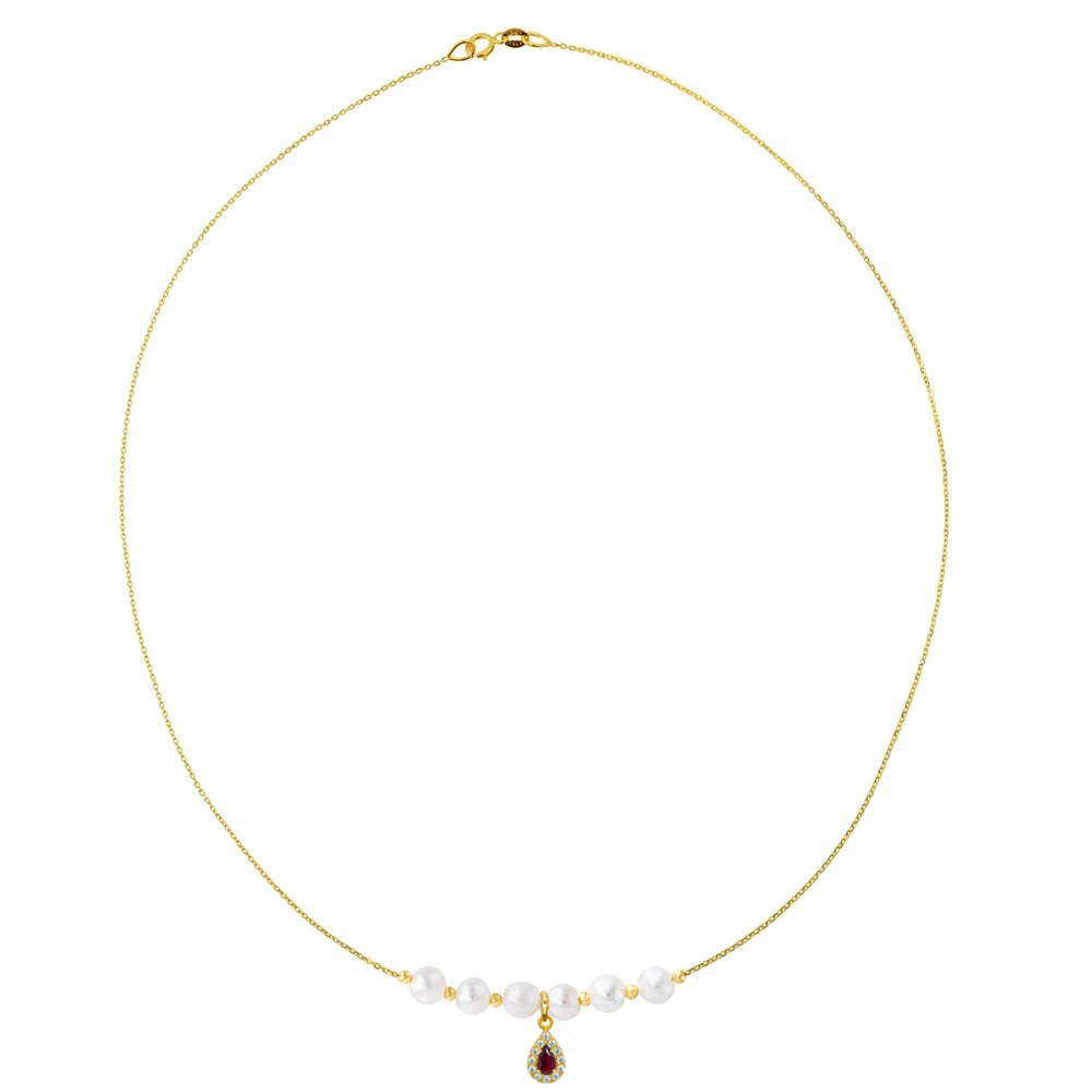 Κολιέ Κ14 με μαργαριτάρια και ζιργκόν σε αλυσίδα - M125075R