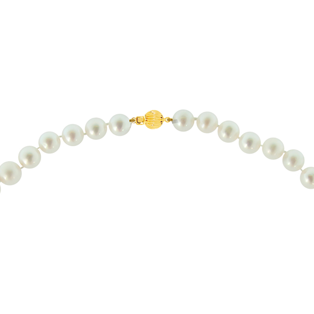 • Ένα υπέροχο κολιέ με λευκά και εντυπωσιακά μαργαριτάρια γλυκού νερού Fresh Water Pearl διαμέτρου 9 - 10 χιλιοστών, άριστης ποιότητας.