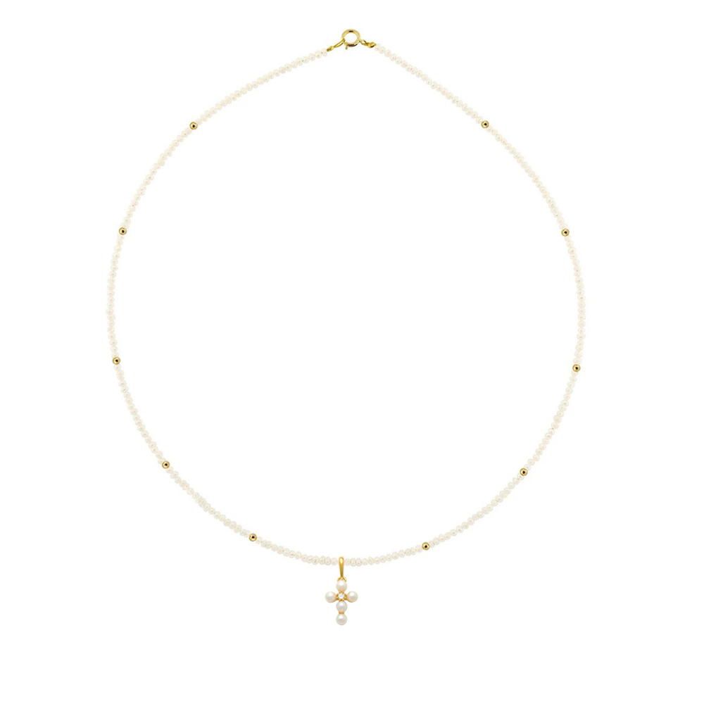 -7% Κολιέ με λευκά μαργαριτάρια, χρυσό σταυρό,στοιχεία και κούμπωμα Κ14 - M125029