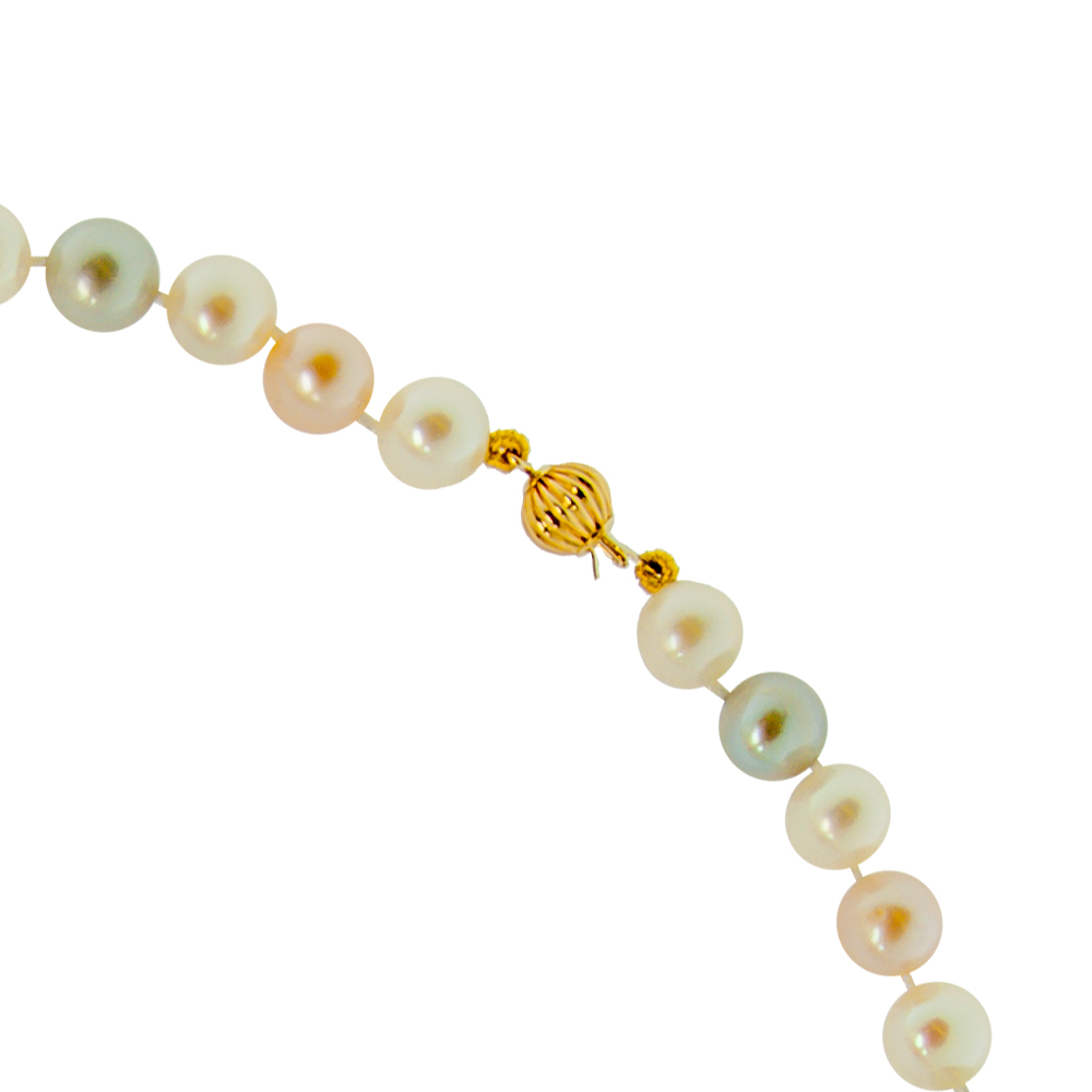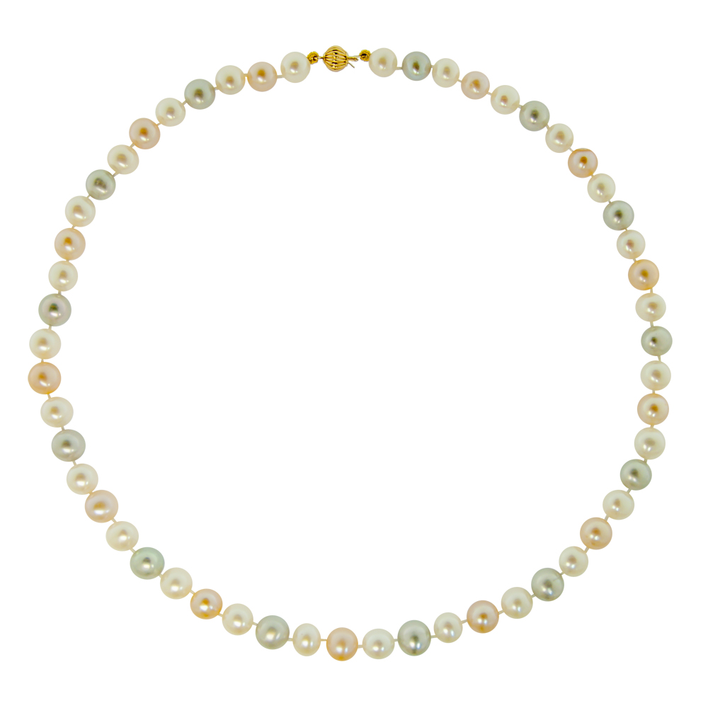 • Ένα υπέροχο κολιέ απο πολύχρωμα και εντυπωσιακά μαργαριτάρια γλυκού νερού Fresh Water Pearl διαμέτρου από 7,5 -8 χιλιοστών.