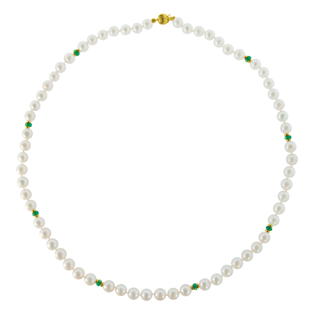 Κολιέ με Κ14 χρυσά στοιχεία, λευκά μαργαριτάρια και σμαράγδια - M116326E