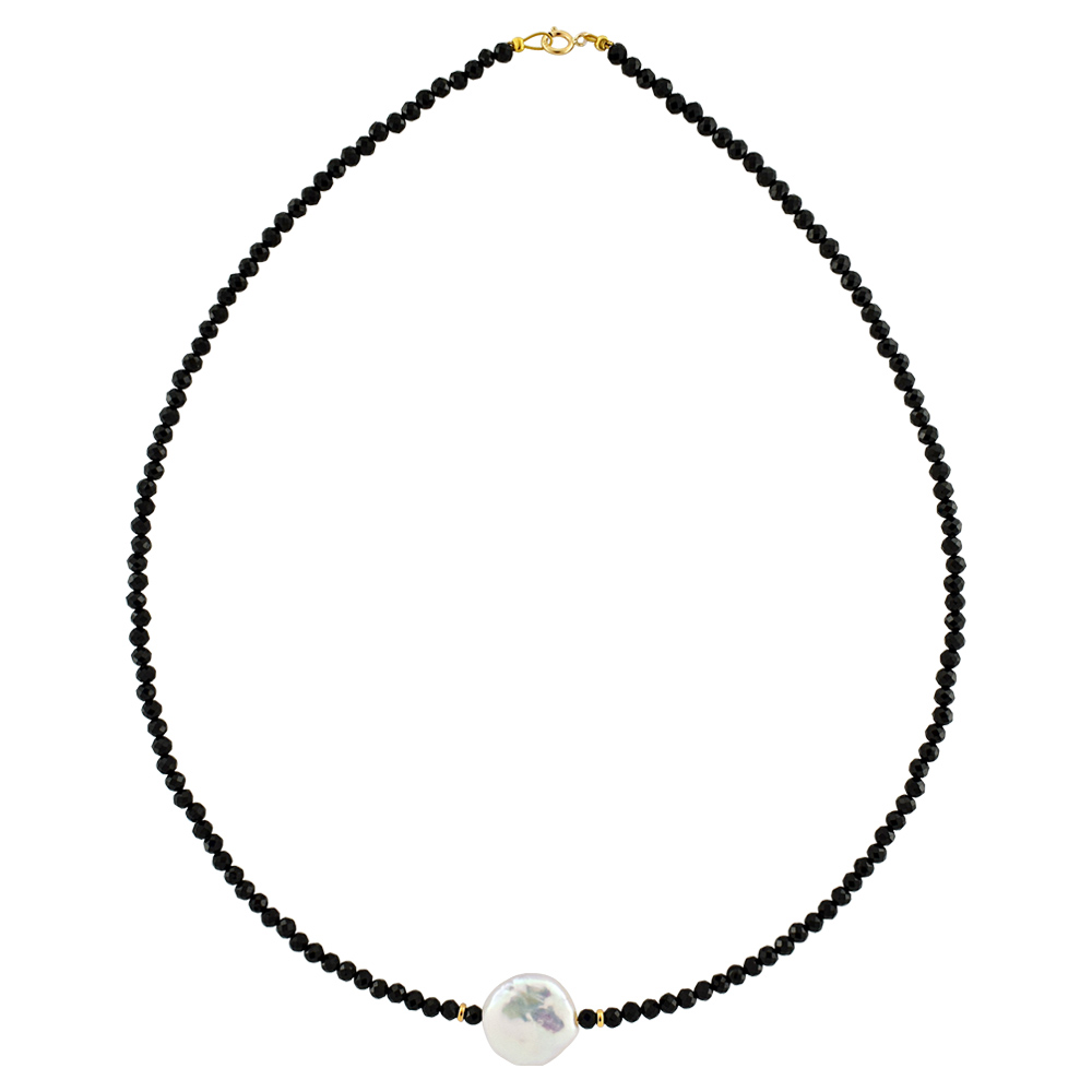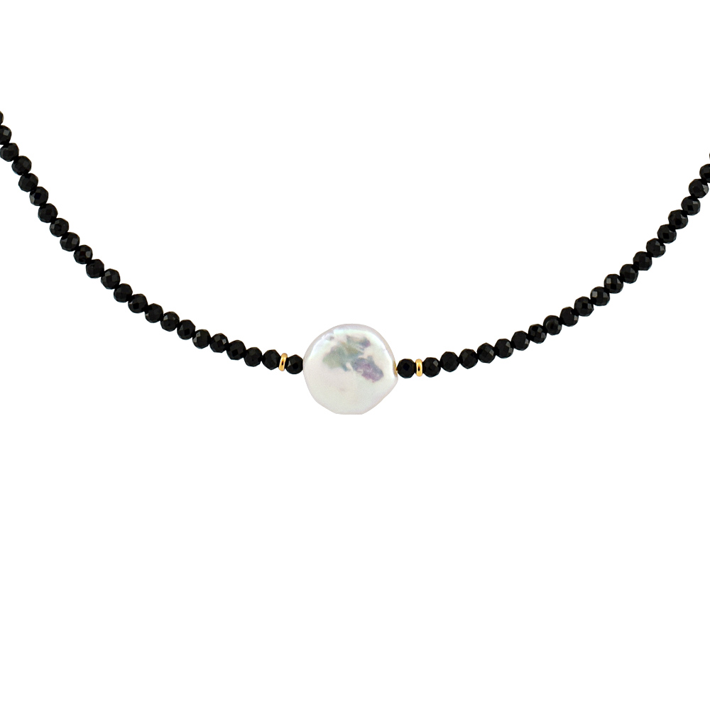 Κολιέ με Κ14 χρυσά στοιχεία , spinel και μαργαριτάρι - M122474S