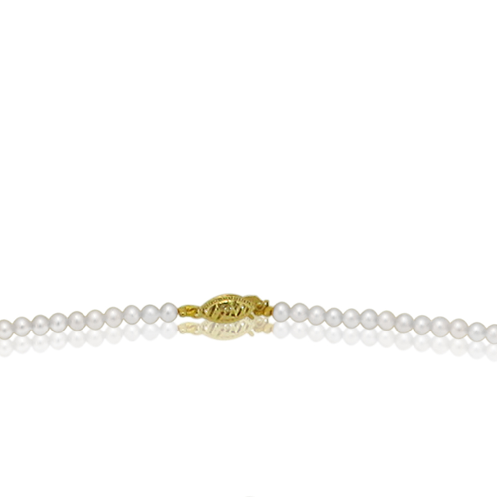 • Ένα υπέροχο κολιέ από λευκά μαργαριτάρια γλυκού νερού Fresh Water Pearl διαμέτρου 4 χιλιοστών.