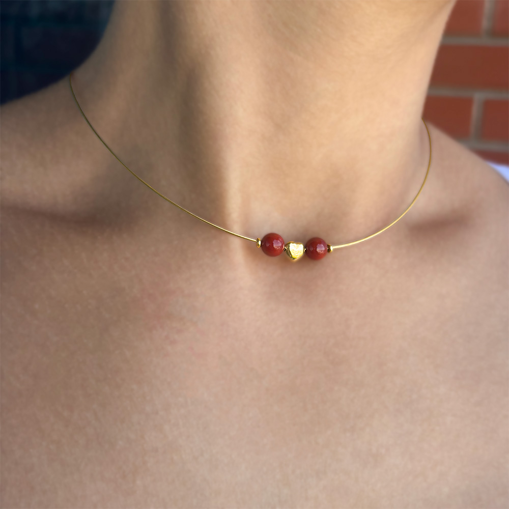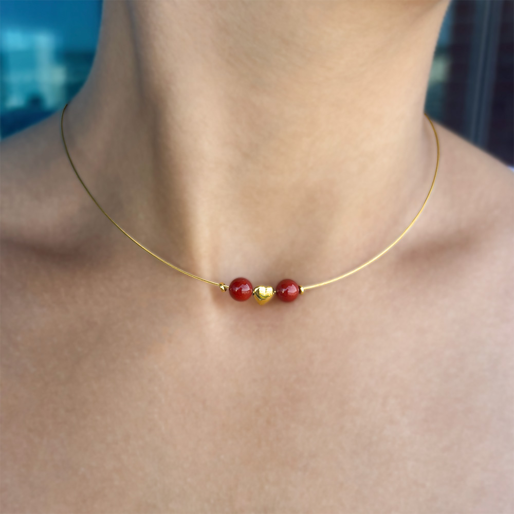 Τα κοράλια και η καρδιά είναι περασμένα σε χρυσό σύρμα 14 καρατίων πάχους 0,6 χιλιοστών.
