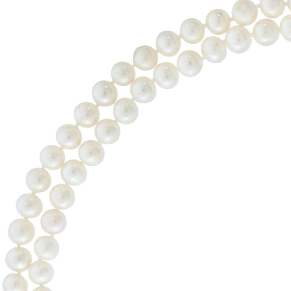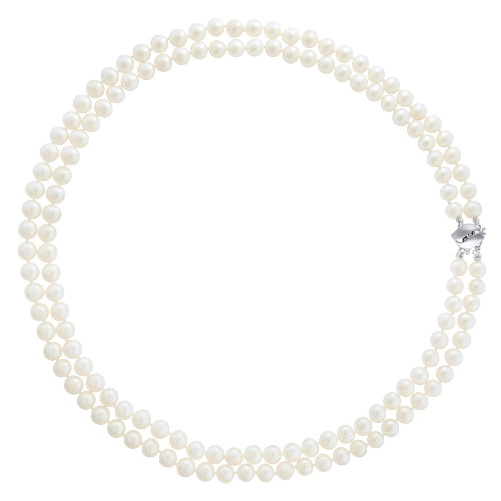 • Ένα υπέροχο κολιέ από 2 σειρές διαφορετικού μήκους λευκά μαργαριτάρια γλυκού νερού Fresh Water Pearl διαμέτρου 6-6,5 χιλιοστών, άριστης ποιότητας.