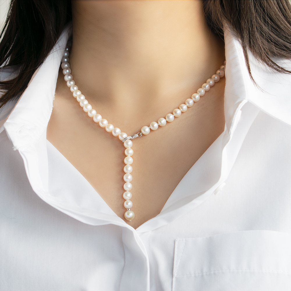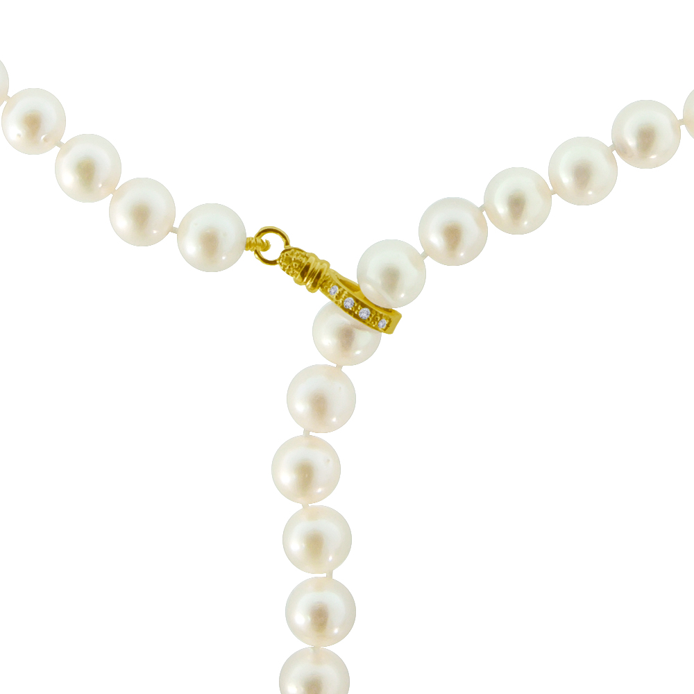 • Ένα υπέροχο κολιέ με λευκά μαργαριτάρια γλυκού νερού Fresh Water Pearl διαμέτρου από 7 έως 8,5 χιλιοστά, άριστης ποιότητας.