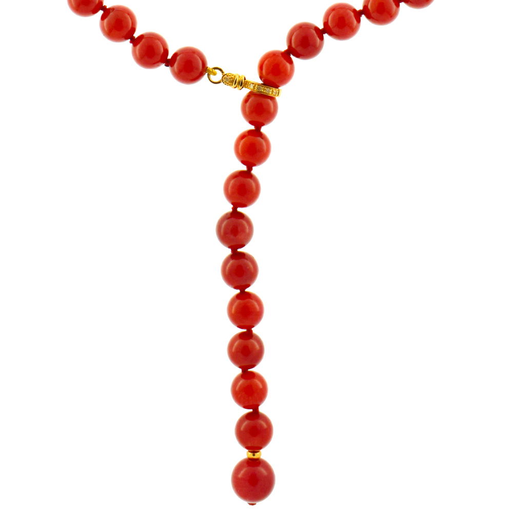 Κολιέ με κοράλλι και χρυσό κούμπωμα Κ18 με διαμάντια - M122480