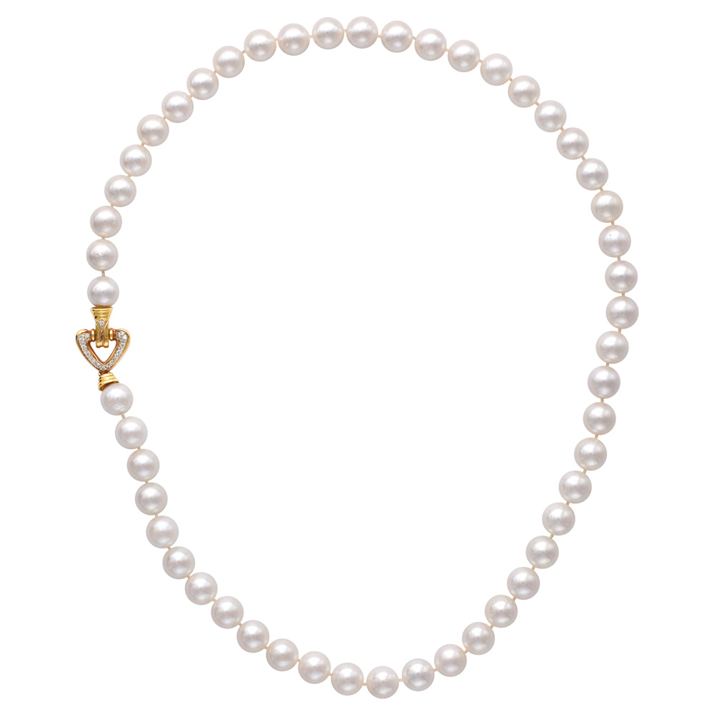 Κολιέ με μαργαριτάρια Akoya και χρυσό κούμπωμα K18 με διαμάντια - M105151