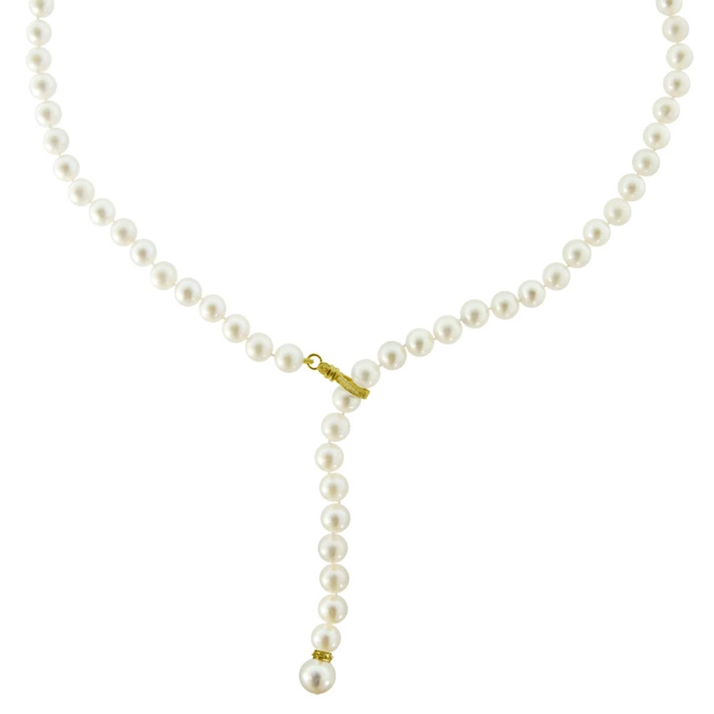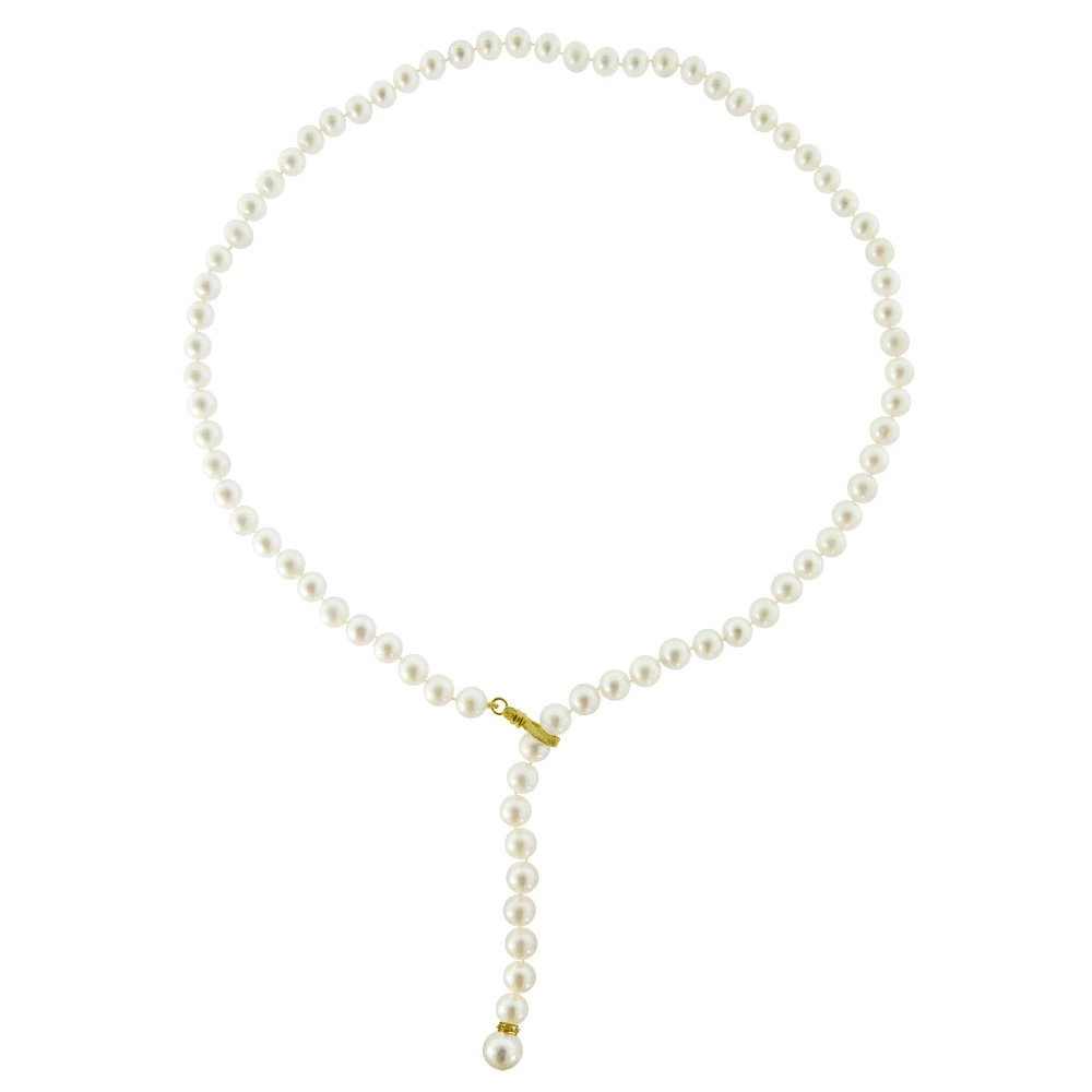 • Ένα υπέροχο κολιέ με εντυπωσιακά λευκά μαργαριτάρια γλυκού νερού Fresh Water Pearl διαμέτρου 7- 8 χιλιοστών, άριστης ποιότητας.