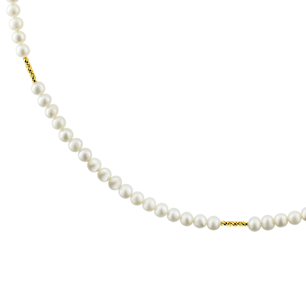 Κολιέ με λευκά μαργαριτάρια και χρυσά στοιχεία Κ18 - M122848