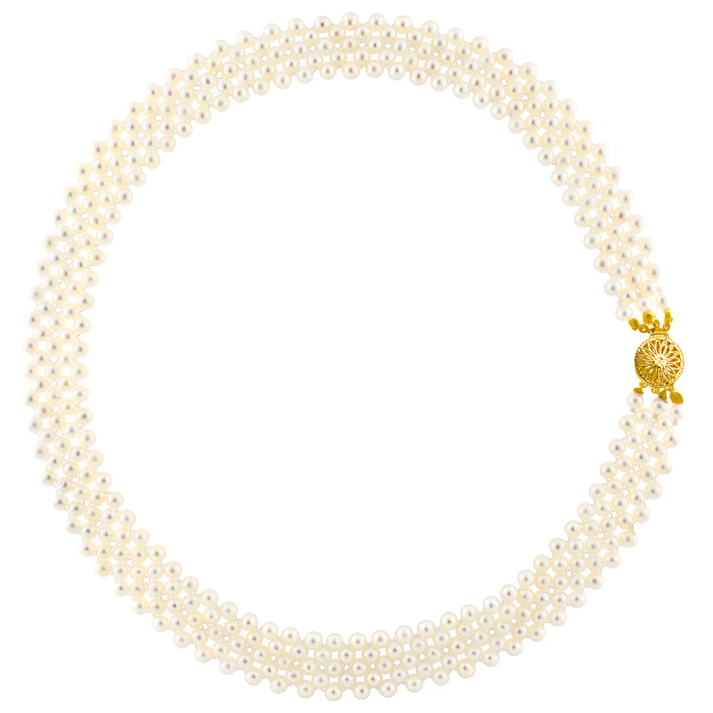 • Ένα μοναδικό κολιέ απο σειρές λευκά μαργαριτάρια Fresh Water Pearl διαμέτρου 4-4,5 χιλιοστών, άριστης ποιότητας.