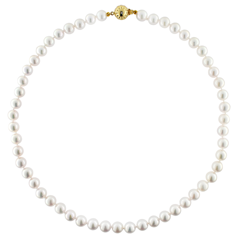 • Ένα μοναδικό κολιέ από ολοστρόγγυλα και εντυπωσιακά λευκά μαργαριτάρια θαλάσσης QTV Akoya Pearl διαμέτρου 7,5 -8 χιλιοστών, άριστης ποιότητας και εξαιρετικού γυαλίσματος.