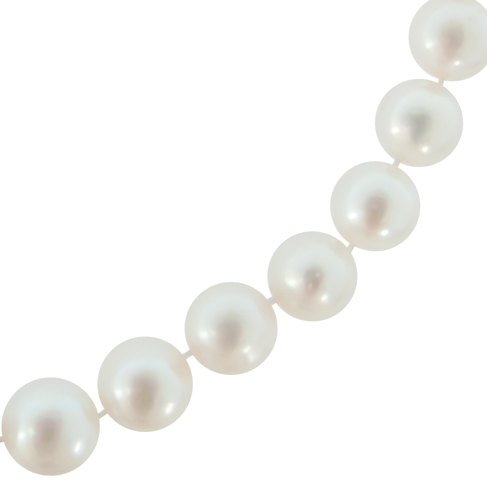 Διαθέτει χρυσό ή λευκόχρυσο κούμπωμα ασφαλείας 18 καρατίων με λευκό μαργαριτάρι διαμέτρου από 10,0 έως 11,0 χιλιοστά.