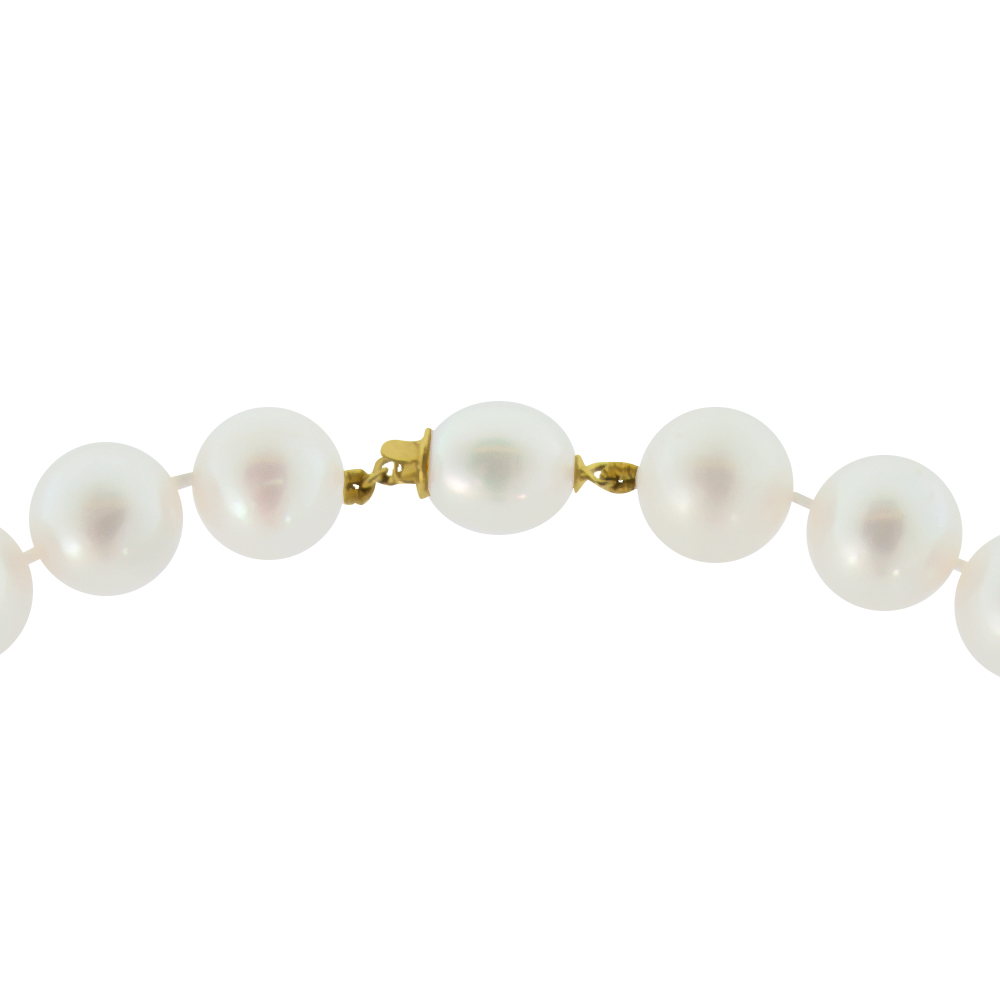 • Ένα υπέροχο κολιέ απο εντυπωσιακά λευκά μαργαριτάρια γλυκού νερού Fresh Water Pearl διαμέτρου από 11,5 έως 14,5 χιλιοστά, άριστης ποιότητας.