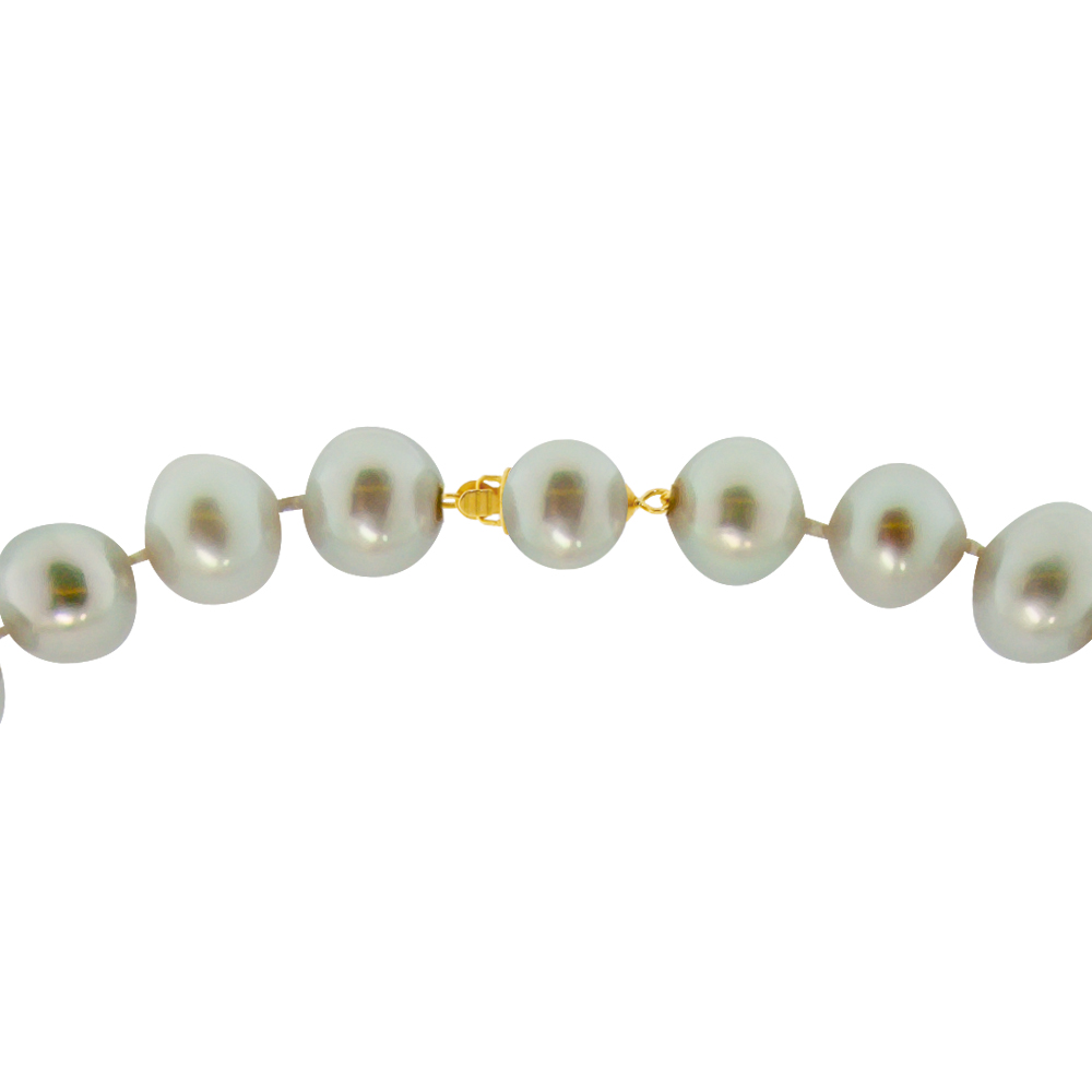 • Ένα υπέροχο κολιέ με γκρι μαργαριτάρια Fresh Water Pearl διαμέτρου 11-12 χιλιοστών.