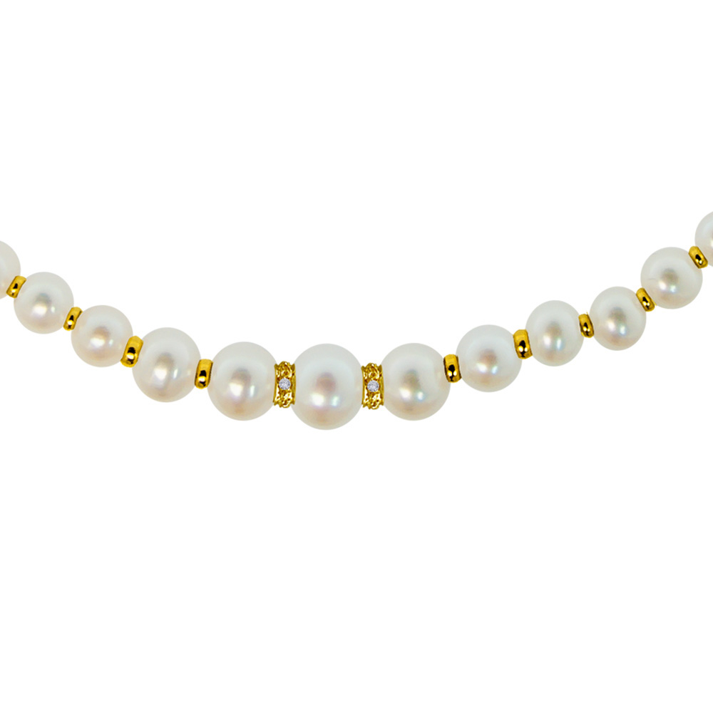 Κολιέ με K18 χρυσά στοιχεία, λευκά μαργαριτάρια και διαμάντια - M319182