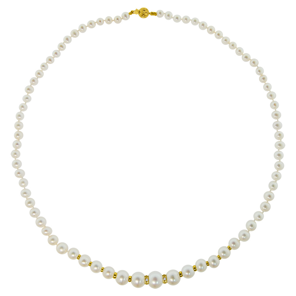 • Ένα υπέροχο κολιέ με λευκά μαργαριτάρια γλυκού νερού Fresh Water Pearl διαμέτρου από 4 έως 8 χιλιοστών, άριστης ποιότητας.