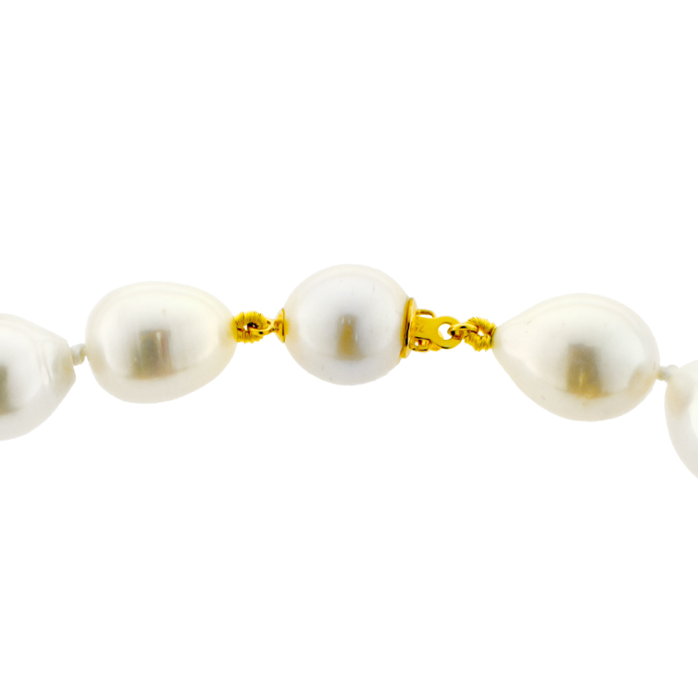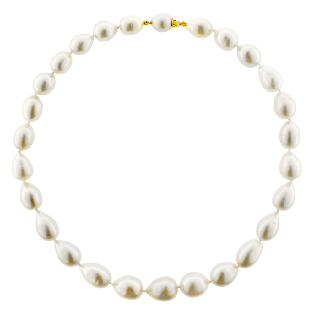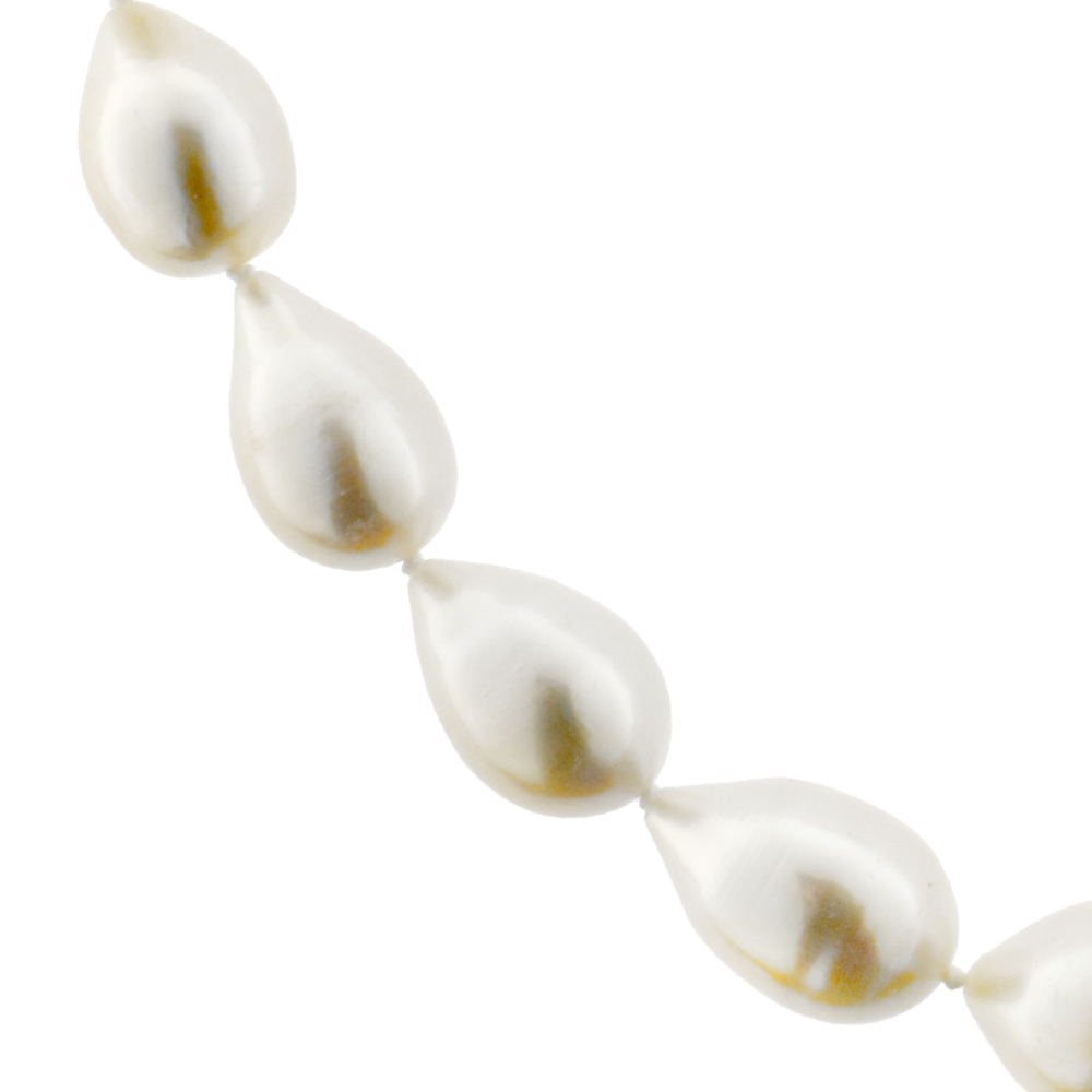 • Ένα υπέροχο κολιέ με λευκά μαργαριτάρια γλυκού νερού Fresh Water Pearl σε σχήμα Drop (σταγόνα), διαμέτρου 10,5x17 χιλιοστών, άριστης ποιότητας.