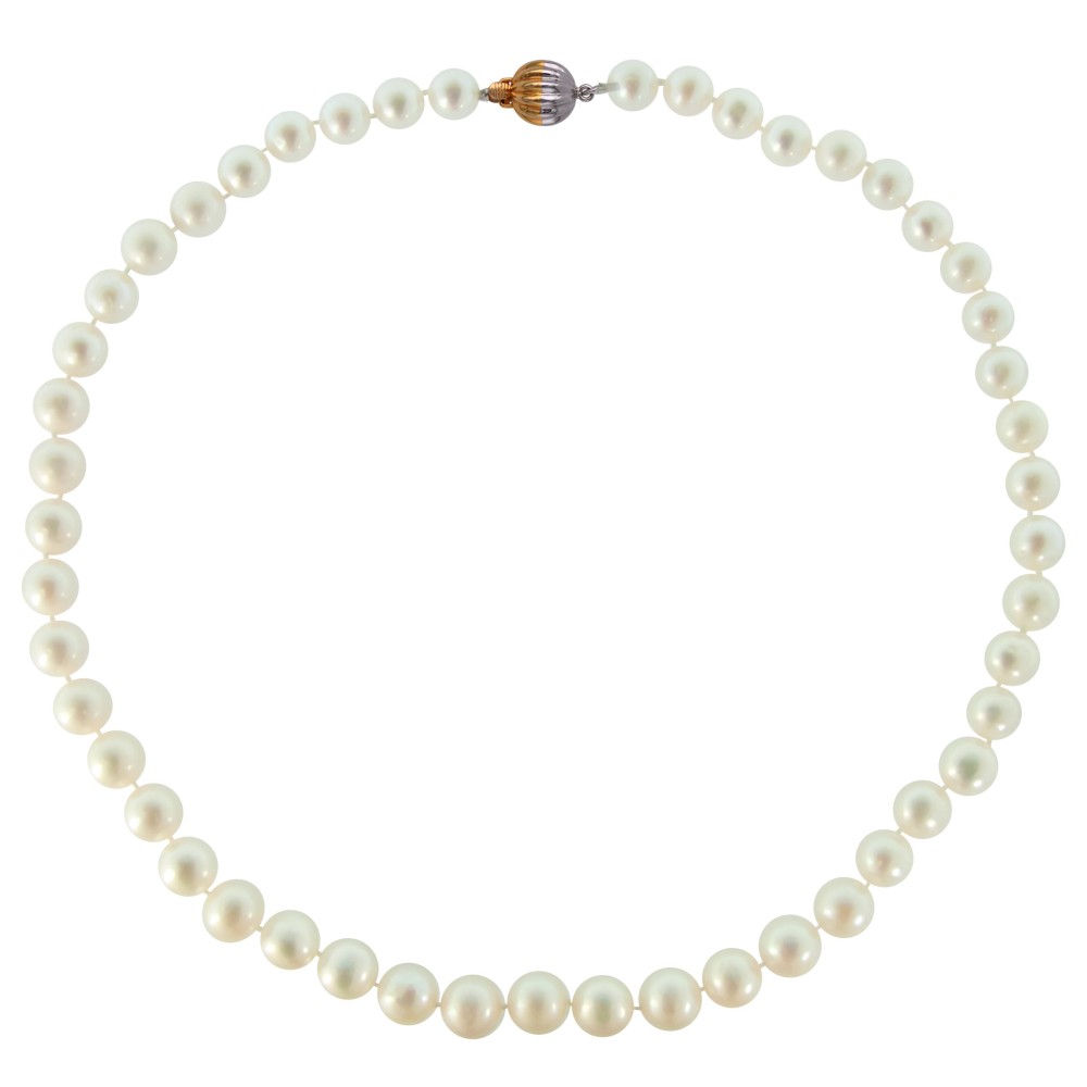 • Ένα υπέροχο κολιέ από λευκά και εντυπωσιακά μαργαριτάρια γλυκού νερού Fresh Water Pearl διαμέτρου 9-10 χιλιοστών, άριστης ποιότητας.