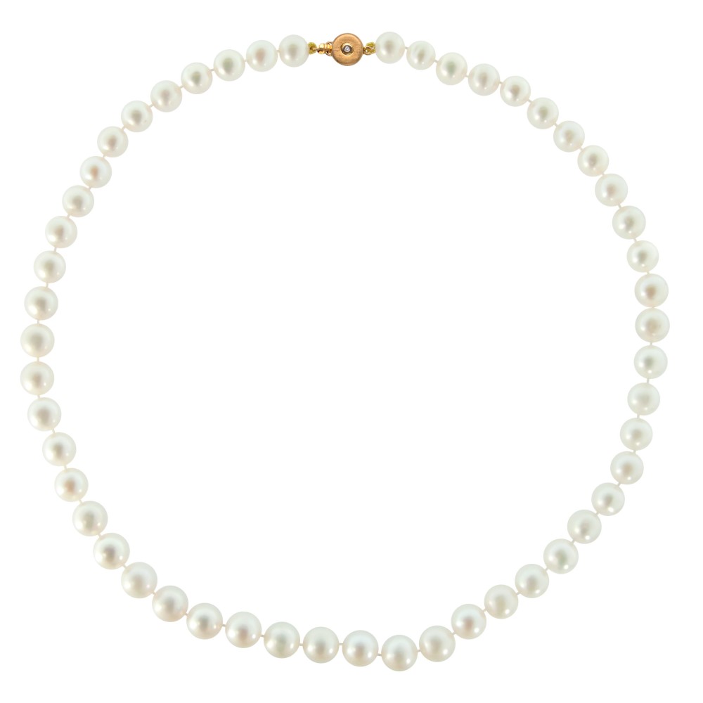• Ένα υπέροχο κολιέ από λευκά μαργαριτάρια γλυκού νερού Fresh Water Pearl διαμέτρου 8-9 χιλιοστών, άριστης ποιότητας.