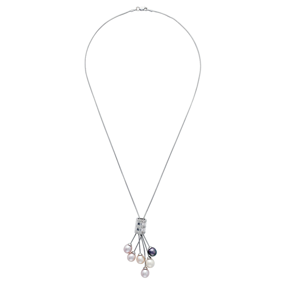 Κολιέ με μαργαριτάρια σε λευκόχρυση αλυσίδα Κ18 με διαμάντια - M303085