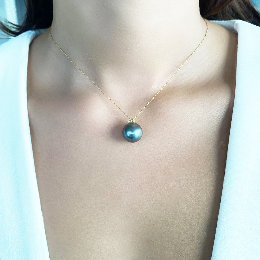 • Ένα μοναδικό κολιέ με 1 σπάνιo και εντυπωσιακό φυσικό μαύρο μαργαριτάρι South Sea Tahiti, διαμέτρου 13 χιλιοστά, σε σχήμα Round (στρογγυλό) άριστης ποιότητας και βάρους 0,83 MOMME.