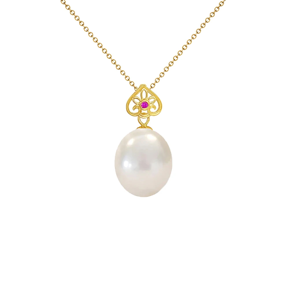 Κολιέ Κ18 χρυσό με μαργαριτάρι και ρουμπίνι - M125223LN